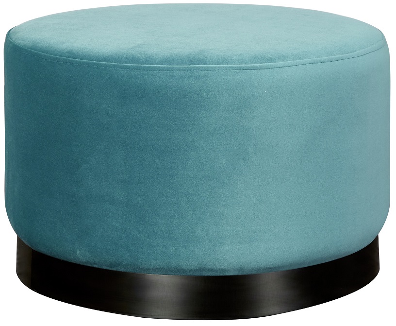 Jack sittpuff i duvblått sammetstyg med svart metallring.