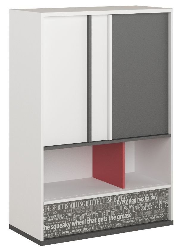 Ett snyggt förvaringsskåp med en modern design. Tillverkad i MDF med goda förvaringsmöjligheter i form av två skåp och ett öppet hyllplan.