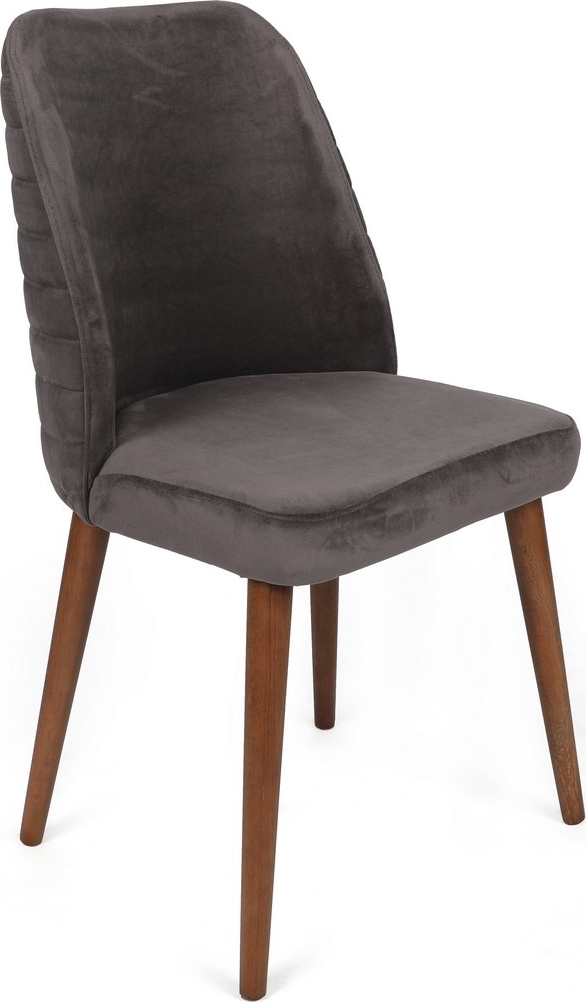 Matstol av metall med klädsel av sammet och ben av avenbok.