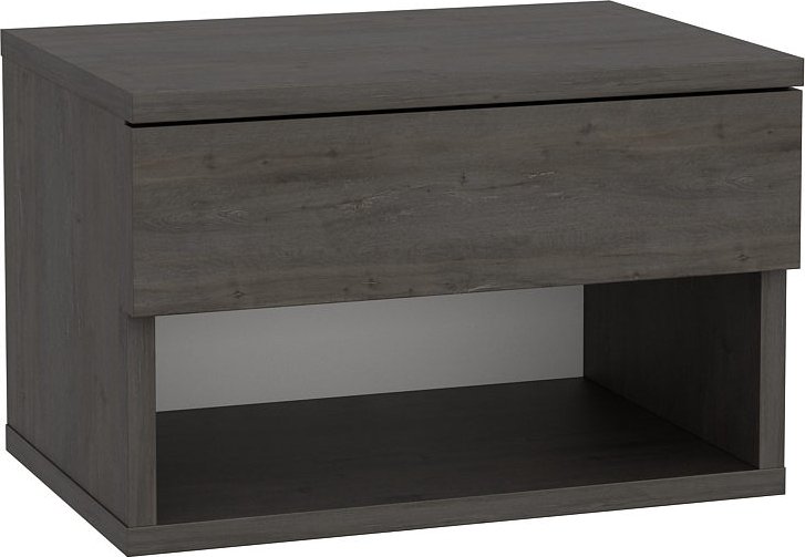 Sängbord av melaminbelagd spånskiva.