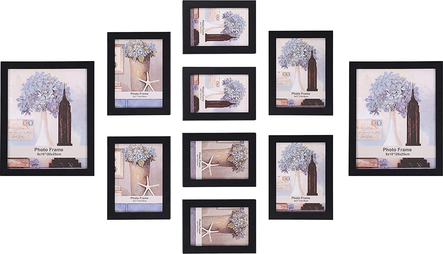 Fotoram. Set med 10 st i 3 olika storlekar.