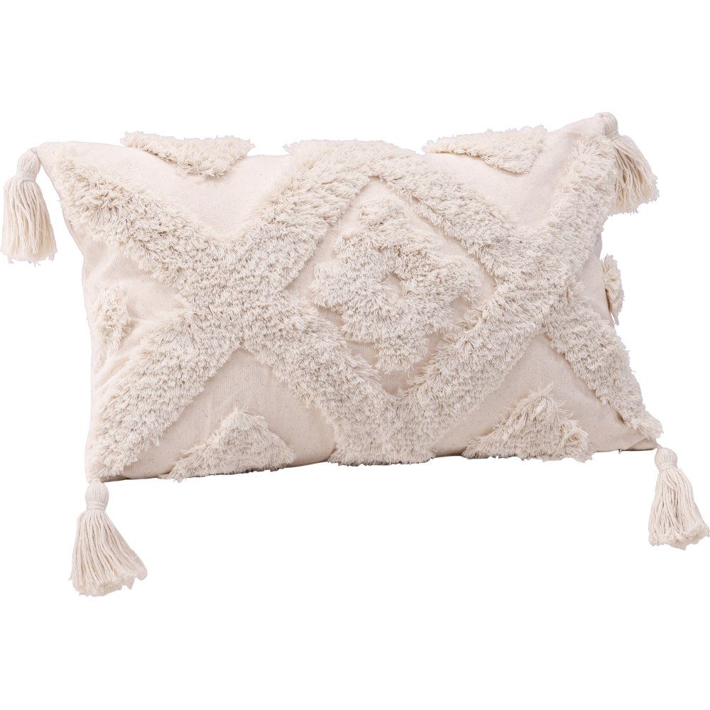 Kuddfodral som utstrålar mysiga dagar och varma trivselkänslor. Fodralet är gräddvit i kulören, fluffig i texturen och ett abstrakt mönster som ger ett vackert blickfång. Det här kuddfodralet har smickarnde tofsar i. vardera hörn och en dold dragkejda nertill. Polyester- och bomullsblandningen är lika slitstarkt som följsamt. Här får du ett avlångt kuddfodral som är helt i linje med trenderna just nu.