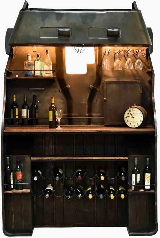 Ståtlig bardisk formad som en jeep, med alltifrån bardisk, hyllor till flaskor, vinställ och upphängning för vinglasen. Få ordning på flaskorna samtidigt som vännerna blir häpna av denna jeep i vintage stil. Tillverkad av massiv mango och metall.
