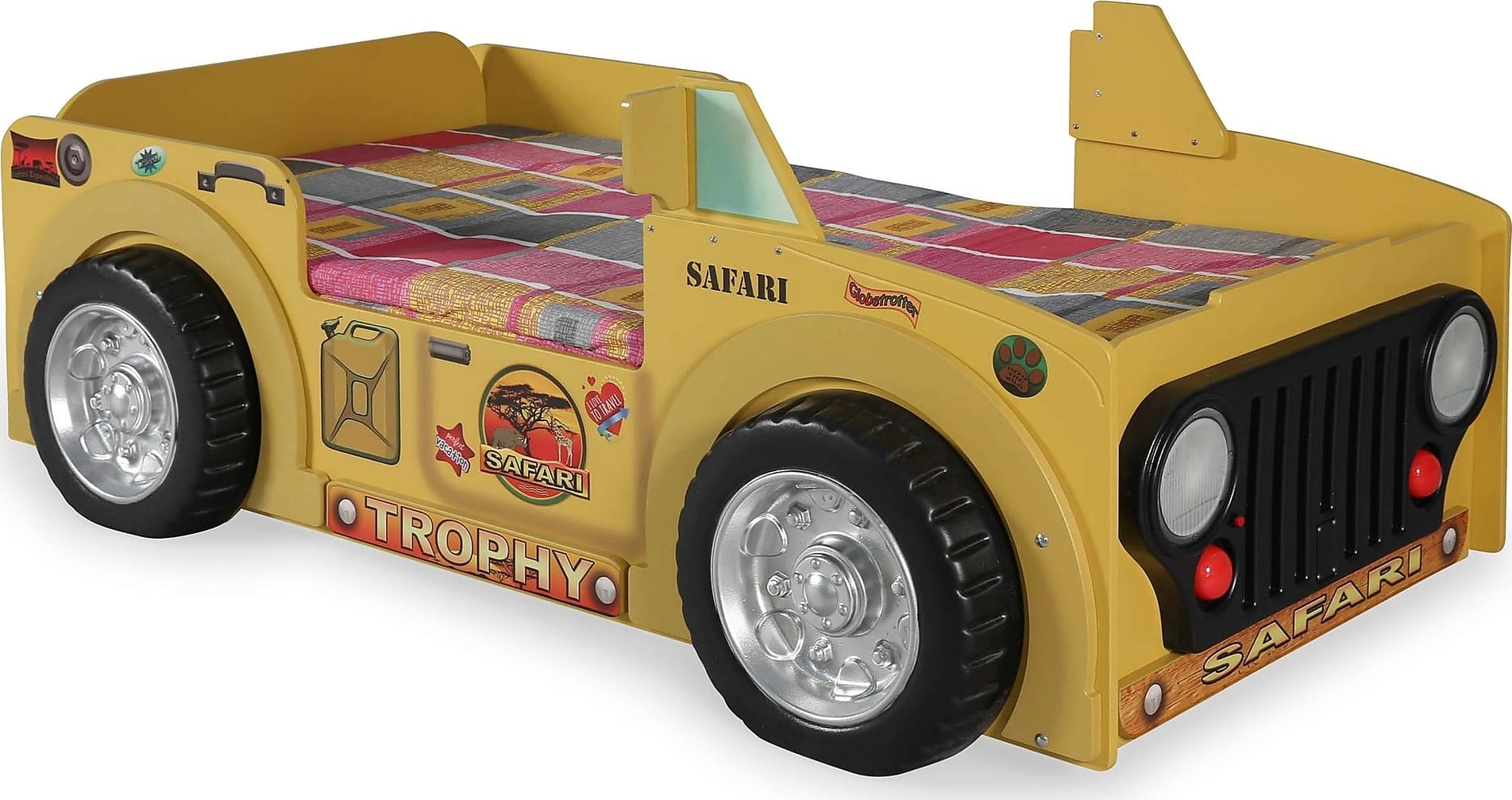 Dröm dig ut bland elefanter, zebror och lejon på savannen med denna jeep. Här kan man sova skönt samtidigt som man kan ha lite lek innan läggdags.