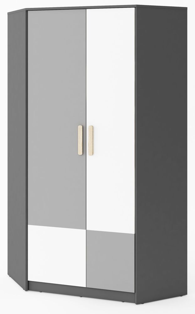 En snygg hörn garderob med en modern design. Tillverkad i MDF och mycket rymlig med goda förvaringsmöjligheter i form av klädstång och hyllplan.