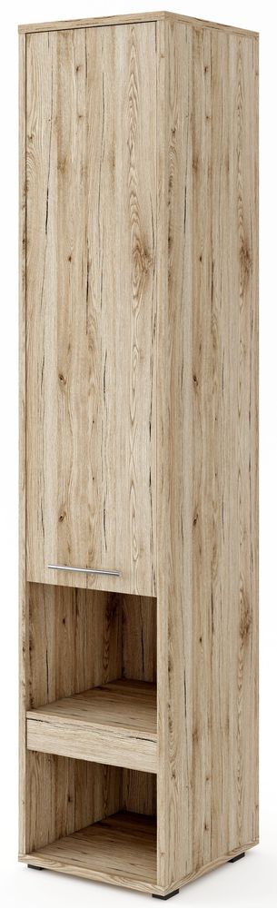 En snygg hylla med en modern design. Tillverkad i MDF med goda förvaringsmöjligheter i form av ett skåp, en låda och två öppna hyllplan.