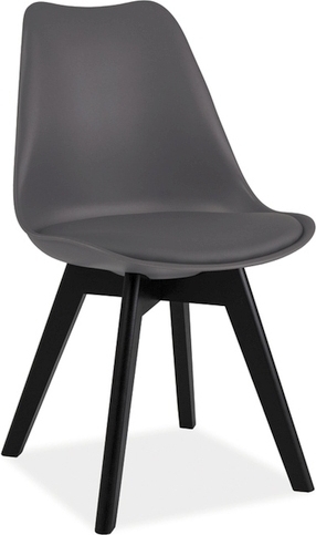 Matstol i plast och bokträ. Klädd i konstläder.