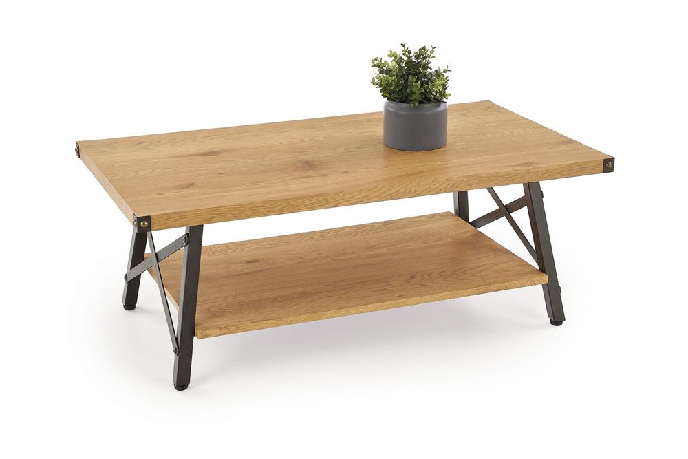 Ett härligt soffbord med en modern design. Bordsskivan är tillverkad av MDF med ett härligt fanér och med en praktisk underhylla för smart förvaring. Underredet är av pulverlackerad metall.