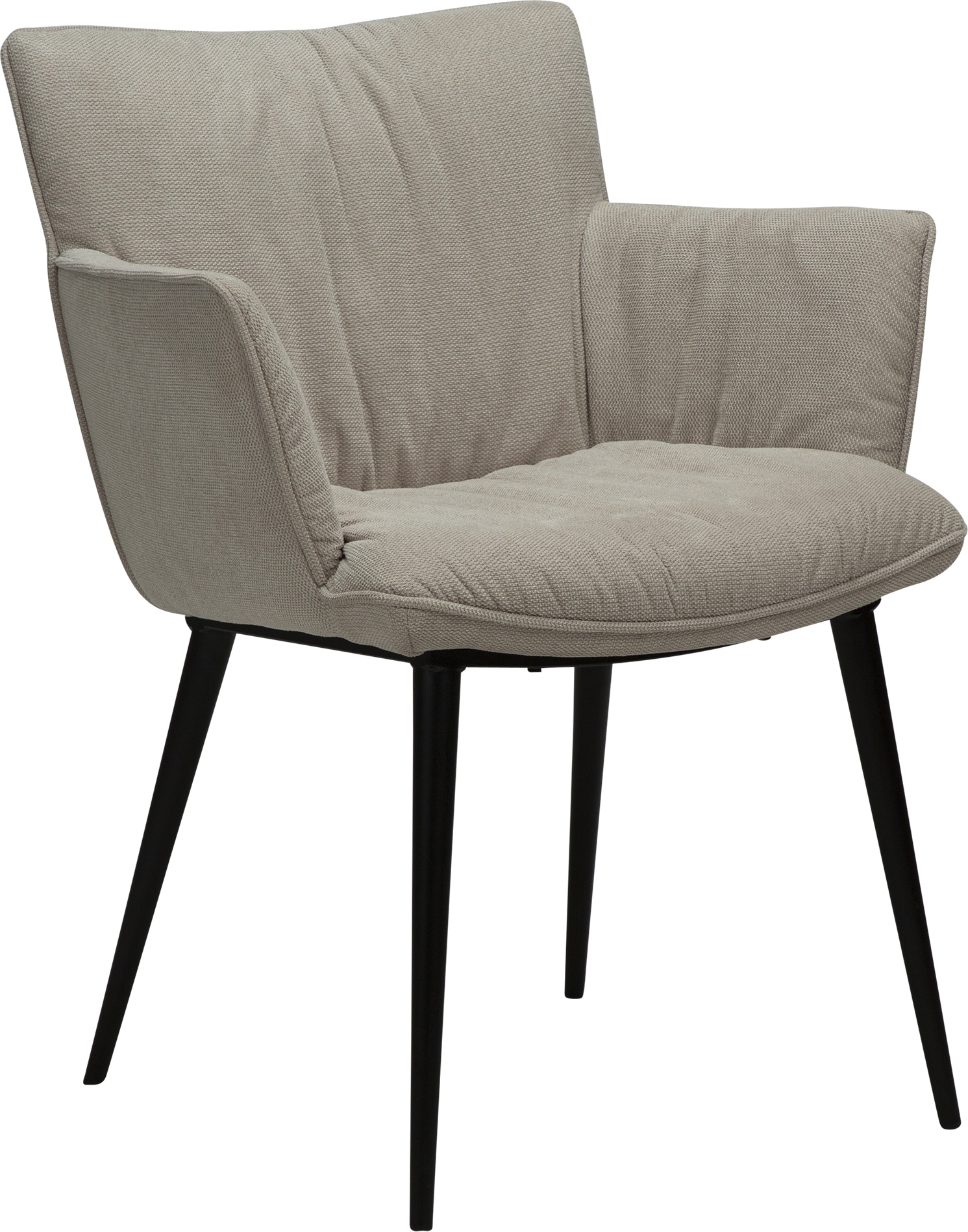 Karmstol med spännande design formgiven av den danska designerduon Says Who. Den löst åtsittande klädseln skapar en flytande effekt och gör designen varm och inbjudande samtidigt som den fokuserar på hög sittkomfort. Koniskt underrede av svart pulverlackad metall.