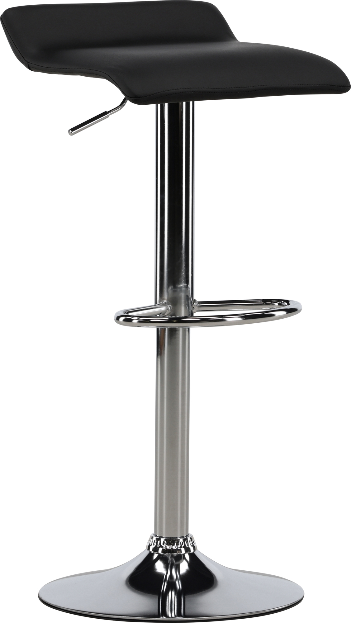Klassisk barstol som aldrig går ur tiden! Barstolen har en stilsäker design med en trumpetfot i kromat stål och en enkel sits i svart konstläder. Placera intill baren i köket för att välkomna lite extra sällskap eller kring ett högre matbord. Den här barstolen förlänger de gemensamma stunderna i hemmets hjärta!