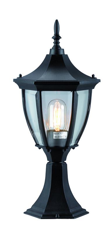 Utomhuslampa Jonna. Monteras exempelvis på en trästolpe eller på muren. Tillverkad i pulverlackerad svart metall och klarglas. Stor lamphållare (E27). Max 75W glödljus eller motsvarande styrka i halogen, lågenergi eller LED. IP-klassen är IP23 avsedd för fast installation. Lampan monteras lätt på plats.