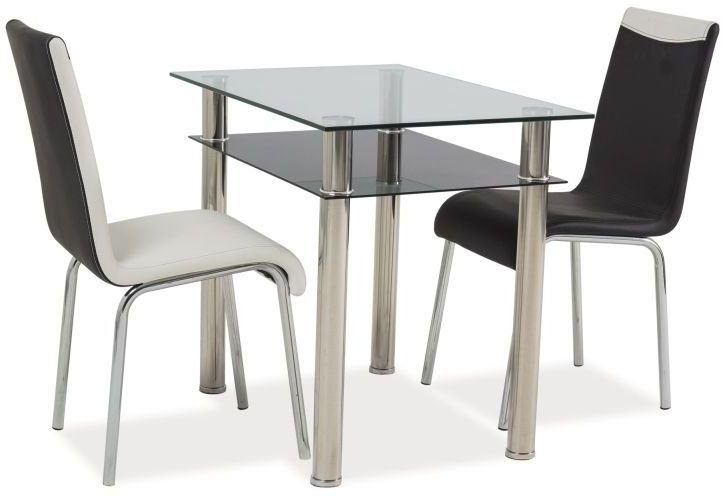 Ett härligt matbord med en modern design. Underredet är tillverkat av kromad metall och bordsskivan är av härdat glas.