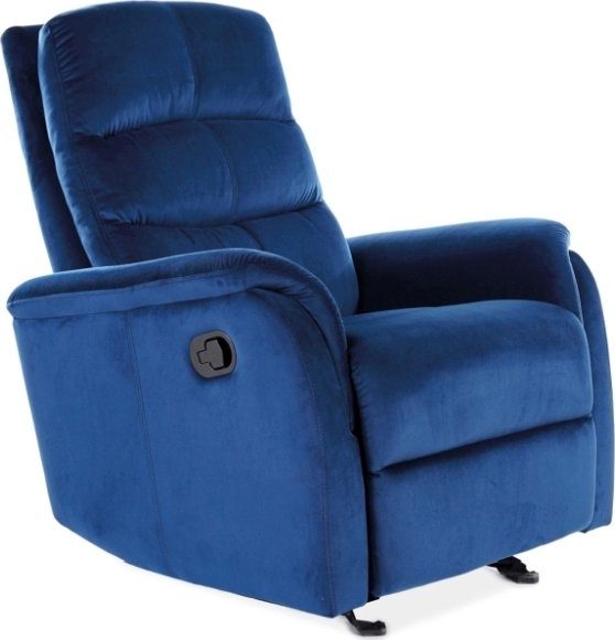 Reclinerfåtölj av metall. Klädd med polyestertyg.