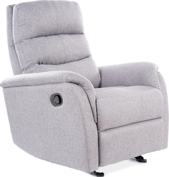 Reclinerfåtölj av metall. Klädd med polyestertyg.