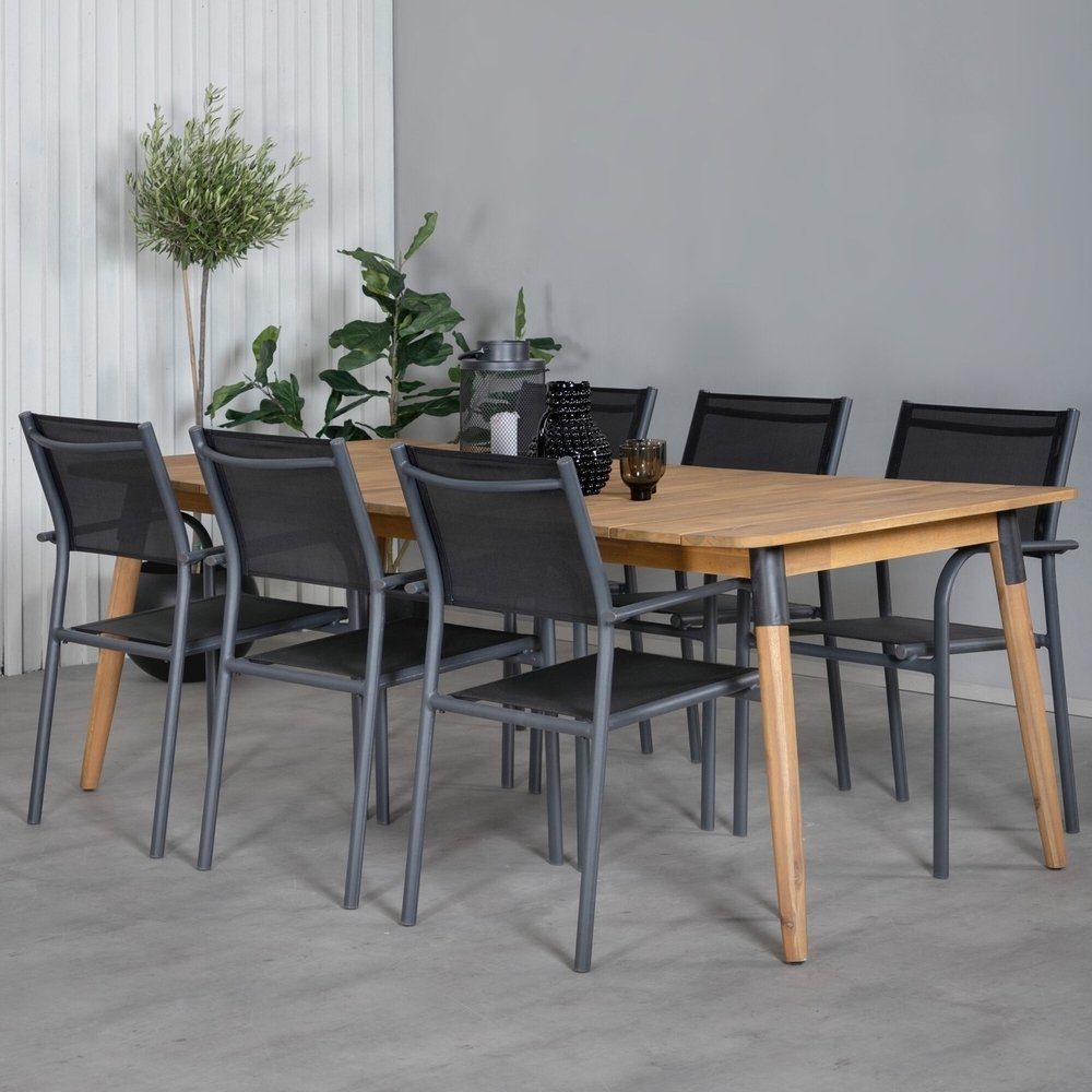 Julian utematgrupp med 6 st Santorini stolar - Svart/Natur