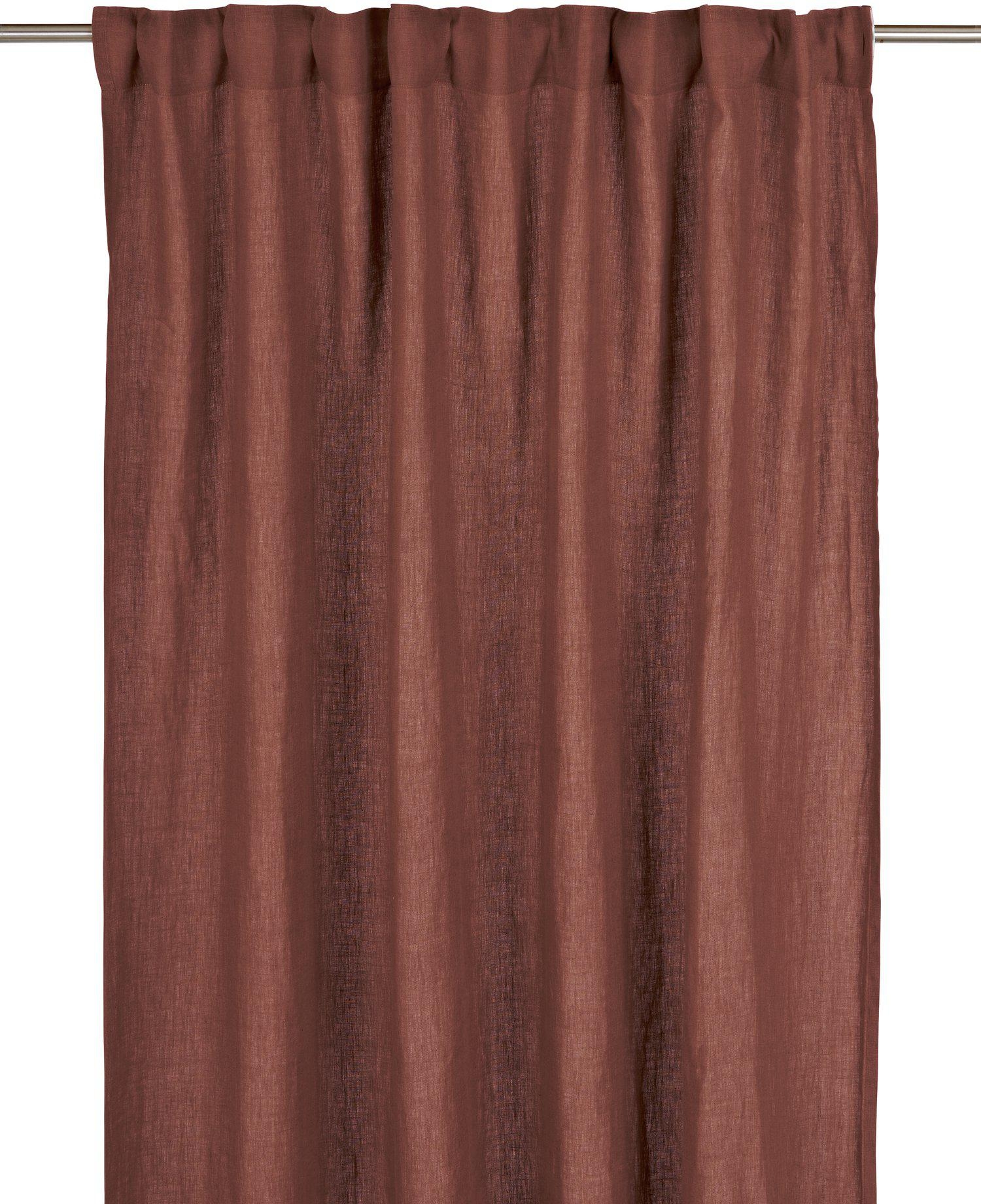2-pack gardin i 100% linne med tungt men mjukt fall. Linet kommmer från Belgien och Frankrike och ger tyget en vacker och naturlig struktur med rustik och exklusiv känsla. Gardinen har multiband i ovankant, fållade långsidor och overlocksöm i nederkant. Multibandet är en flexibel lösning som gör att gardinen kan hängas upp antingen med fingerkrokar, räkor eller direkt på en stång beroende på vilken typ av veck och vilket fall du vill ha. Använd snabbfållningsband för att få önskad längd på gardinlängden. Måttet på varje gardin är 145x280cm. Kan krympa upp till 5-7%. Produkten är certifierad enligt STANDARD 100 by OEKO-TEX®. Certifieringen garanterar att produkten är testad och fri från ämnen som kan vara skadliga för hälsan och miljön.