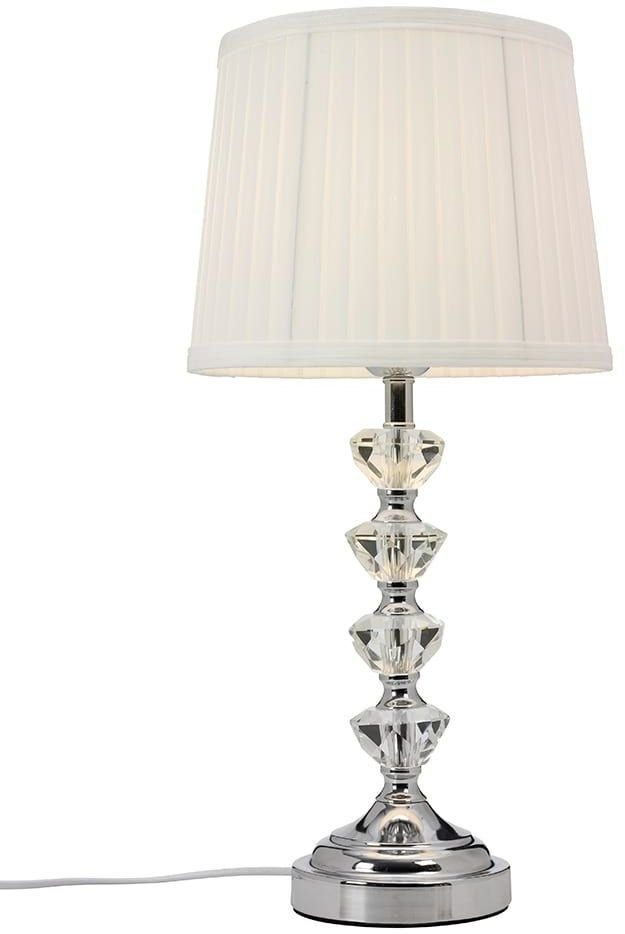 En lyxig bordslampa med en elegant design. Basen är tillverkad av kromad metall med detaljer i kristall glas och med en vit plisserad skärm.