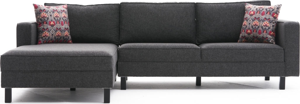 Divansoffa av bokträ. Klädsel av polyester/linne.