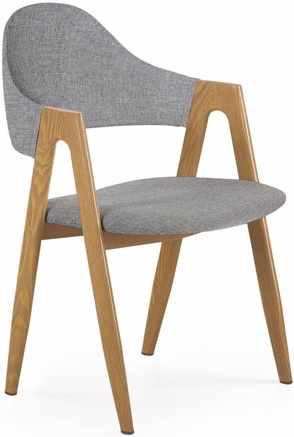 En fin matstol med en stilren design. Stolen är klädd med ett mycket behagligt tyg för maximal komfort och underredet är tillverkat av färgad metall med en snygg trä look.