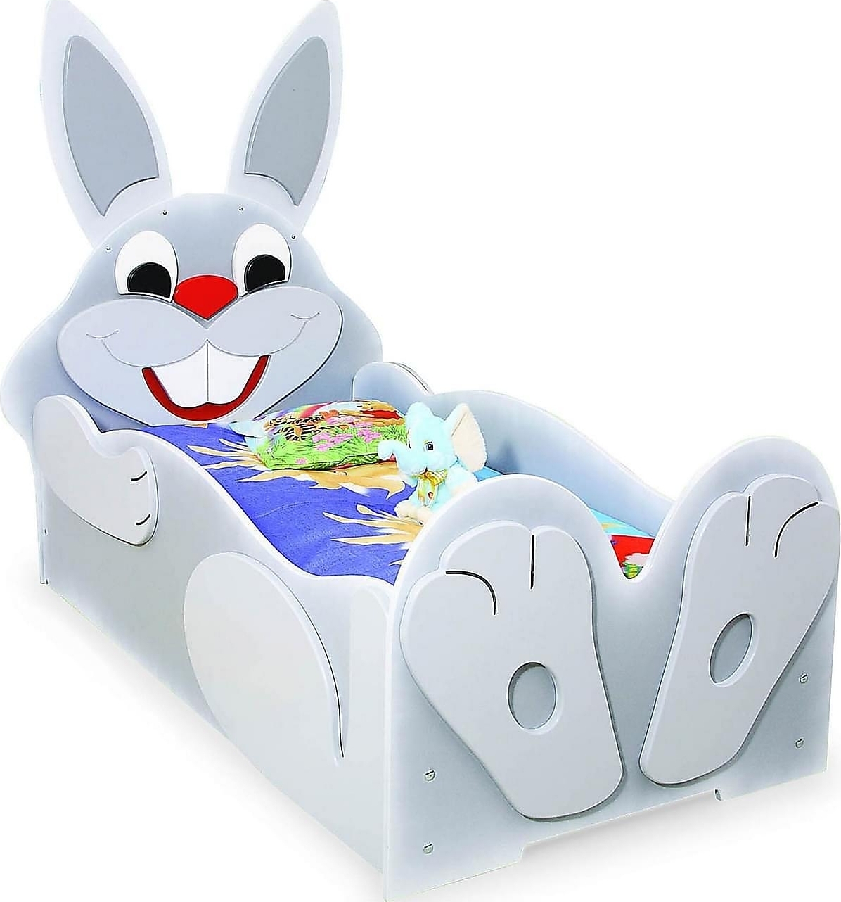 I denna söta barnsäng i form av en kanin kan barnen gå och lägga sig skönt och tryggt i kaninens famn. Bunkra upp med lite extra nallar och gosa ner dig och barnet med en liten saga innan det är dags för att sova. Madrass av bomull och polyester ingår.