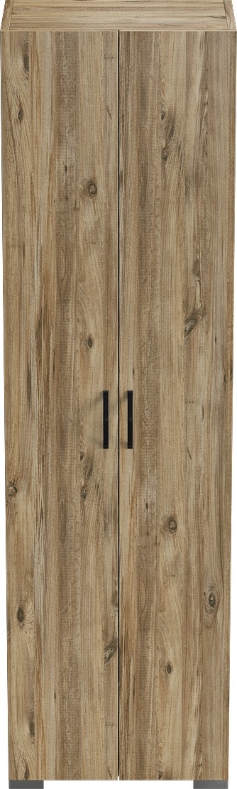Skåp av melaminbelagd spånskiva med handtag av metall.