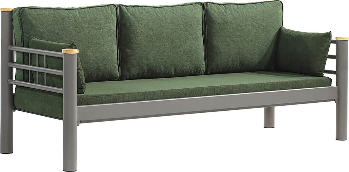 3-sits soffa av metall, klädd med chenille, polyester och bomull.