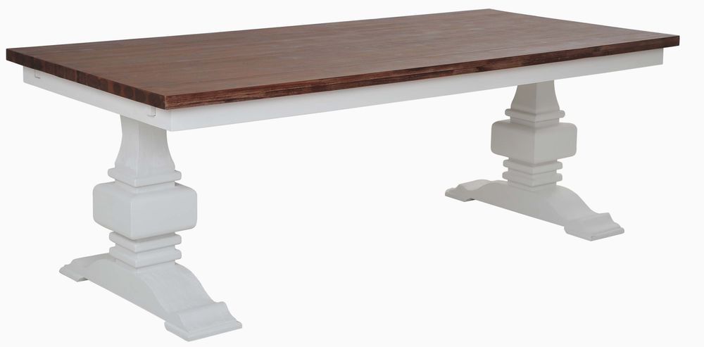 Robust och pampigt matbord med lackad och antikbehandlad toppskiva. Underredet är vit med väl tilltagna former på benen. Ett bord som sätter karaktär på hemmet.
