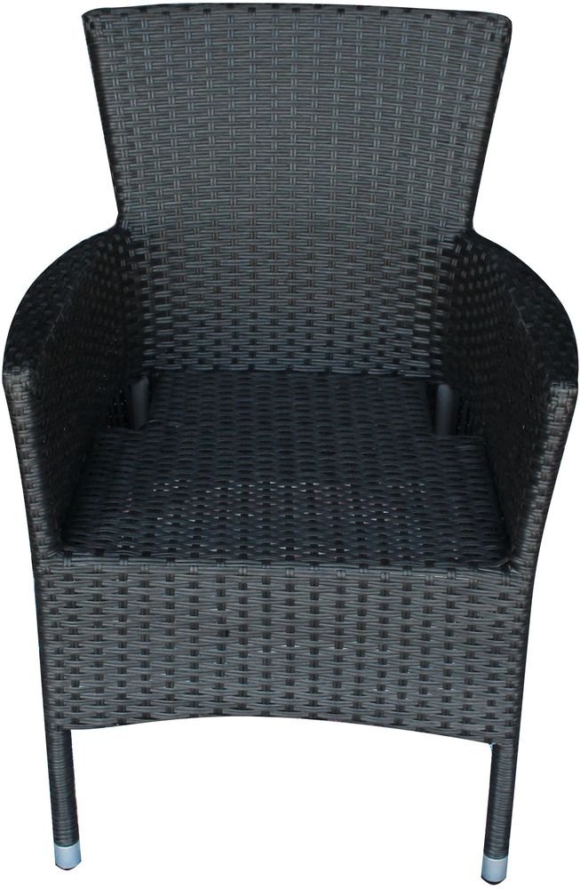 En modern och behaglig karmstol för både inne- och utomhusbruk. Själva ramen är tillverkad av stål som är klädd med svart konstrotting.