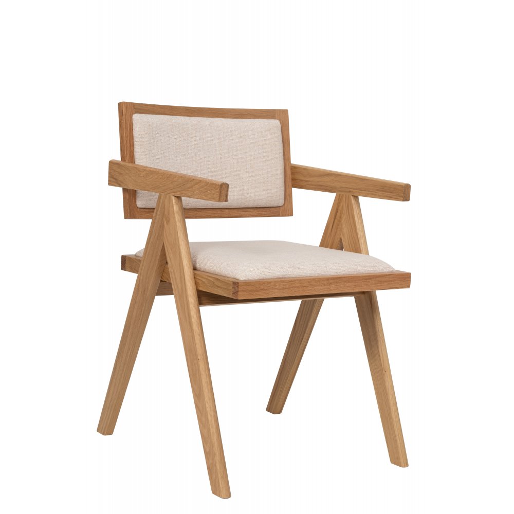 Sara karmstol kombinerar tidlös design med naturliga material för att skapa en stol som både är vacker och funktionell. Den robusta ramen är tillverkad av FSC-certifierat massivt ekträ, medan sits och rygg är klädda i ett mjukt linnefärgat tyg som ger en varm och inbjudande känsla. Tack vare sitt harmoniska uttryck och sina rena linjer passar Sara lika bra vid matbordet som i hemmakontoret eller vardagsrummet.