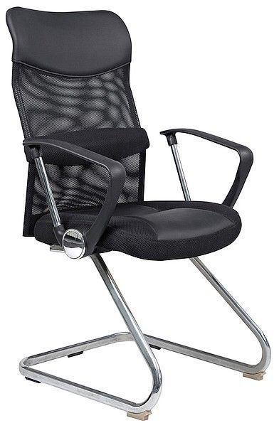 En fin kontorsstol med en modern design. Underredet är tillverkat av kromad metall och sitsen är klädd med en blandning av tyg, nättyg och konstläder.