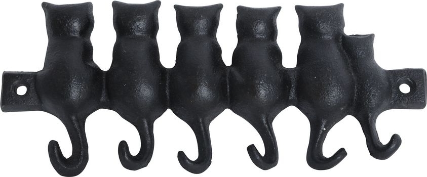 Kroklist av gjutjärn, 6 st hängar. Kroklist i form av katter.