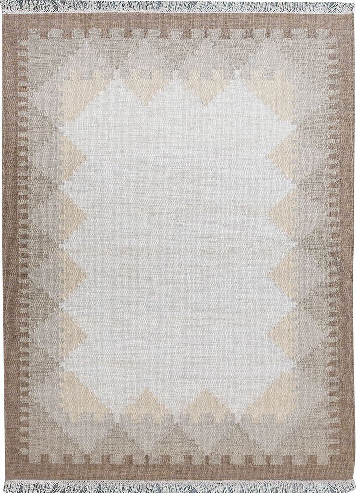Handvävd vändbar kelimmatta i ull från Nya Zeeland.