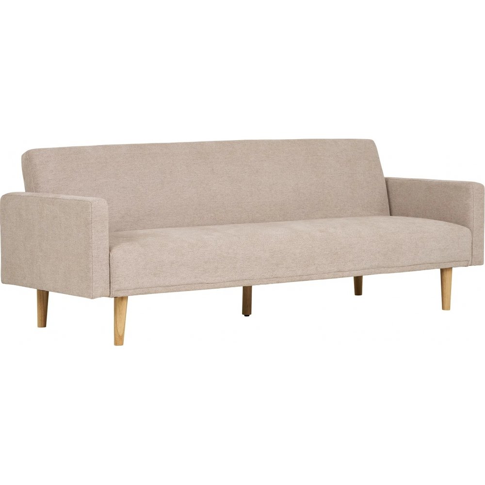 Bäddsoffa med klädsel av polyester och ben av gummiträ. Levereras omonterad.