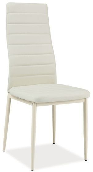 En härlig matstol med en modern design. Underredet är tillverkat av vit metall och sitsen är klädd med ett mycket behagligt konstläder för maximal komfort.