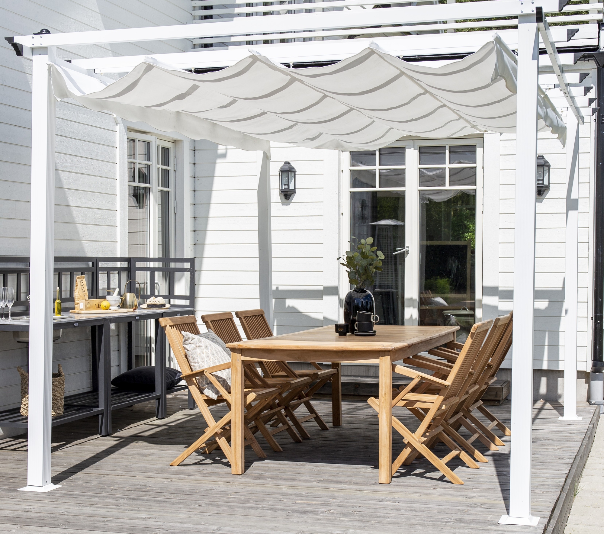 Matbord med klassisk design som garanterat kommer skapa ett gemytligt blickfång på din uteplats i sommar. Bordet är rektangulärt med raka nordiska former och är genomgående tillverkat i det vackra materialet teak. Här kan du samla vänner och familj för trivsamma måltider flera utesäsonger framöver.