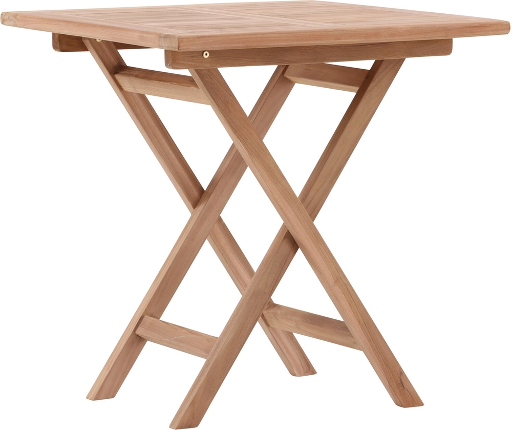 Pryd uteplatsen med ett charmigt cafébord från vår populära serie Kenya! Det här kvadratiska bordet i vacker teak är lika iögonfallande som praktiskt. Bordet är hopfällbart vilket gör det lätt att flytta runt efter behov - placera på terassen eller balkongen och njut av soliga fikastunder utomhus! Skötselråd:Våra teakmöbler produceras av certifierad teak som är odlad för ändamålet och inte skövlade från ömtålig regnskog. Som ett av de tåligaste träslagen innehåller teak mycket olja som sedvanligt behövs för att inte materialet ska spricka. Eftersom träslaget innehåller naturligt mycket behöver inte möblerna impregneras lika ofta.