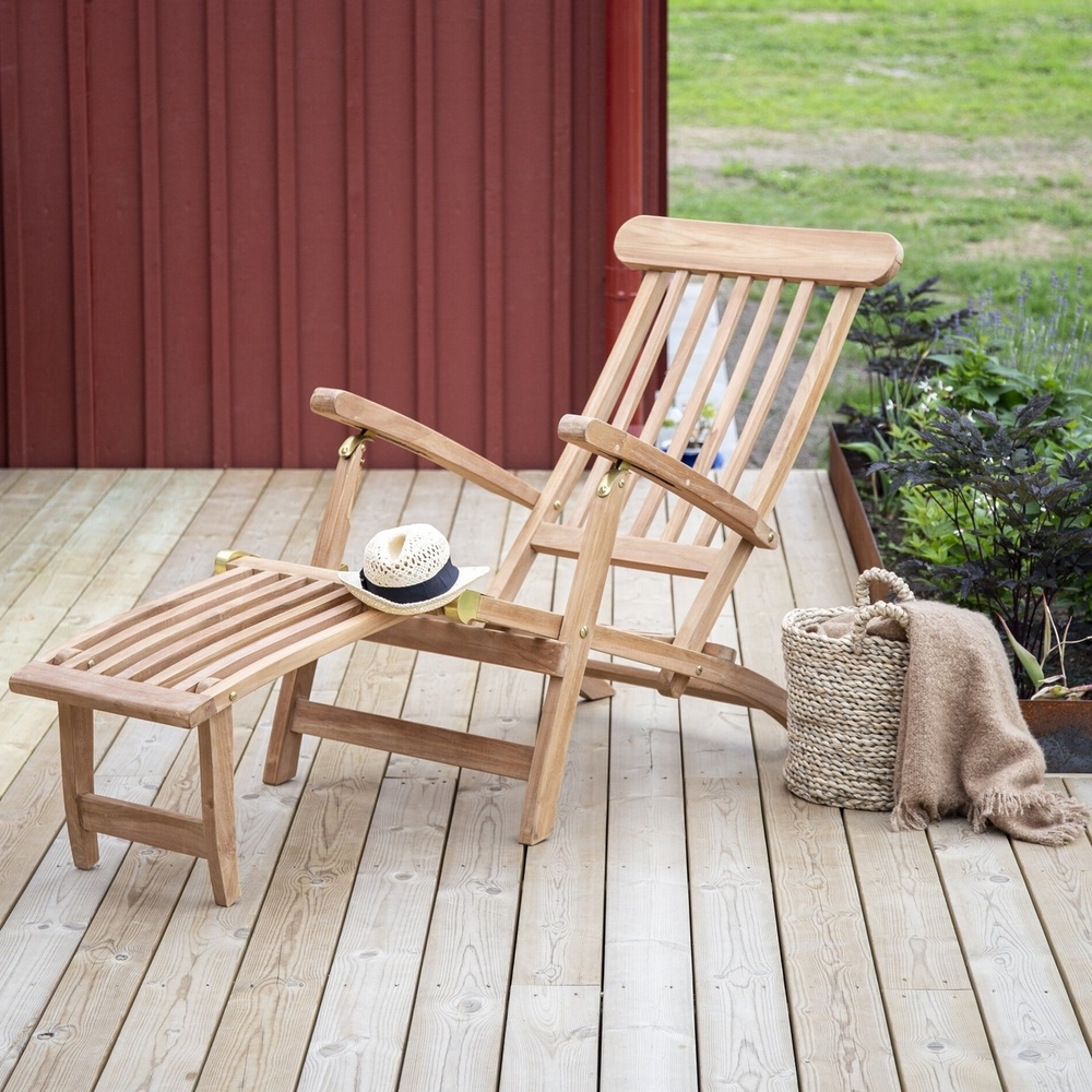 Lyxig, stilren och funktionell - njut ordentligt av solen i sommar i en bekväm solstol från serien Kenya! Den klassiska trä-looken skapar en trivsam och ombonad känsla på din uteplats. Tillverkad i teak gör att solstolen är slitstark och robust - se våra skötselråd för bästa tips! Släng upp fötterna och luta dig tillbaka - här kommer du garanterat vilja spendera många härliga stunder framöver! Skötselråd: Våra teakmöbler produceras av certifierad teak som är odlad för ändamålet och inte skövlade från ömtålig regnskog. Som ett av de tåligaste träslagen innehåller teak mycket olja som sedvanligt behövs för att inte materialet ska spricka. Eftersom träslaget innehåller naturligt mycket behöver inte möblerna impregneras lika ofta.