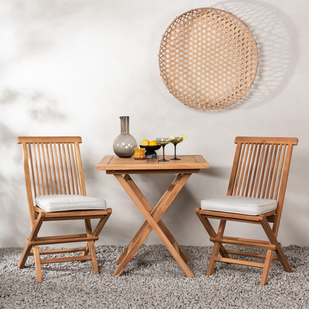 Möblera för den perfekta fikastunden i sommar! Kenya cafébord är ett vackert cafébord i vacker teak som passar utmärkt för sommarens alla utefrukostar och eftermiddagsfikor. Med sitt klassiska utförande och smidiga design är bordet enkelt att matcha, smidigt att flytta runt samt hopfällbart. Här tillsammans med 2st bekväma matstolar från serien Kenya, också i teak. Stolarna är också hopfällbara för praktisk förvaring. Skapa en charmig plats för sommarens alla tillfällen! Bordets mått: 70x70cm cm.