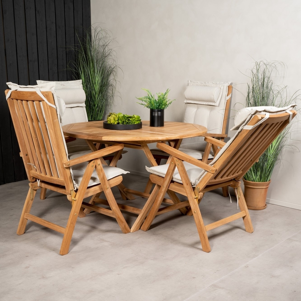 Kenya utematgrupp med 4 st Kenya positionsstolar - Teak
