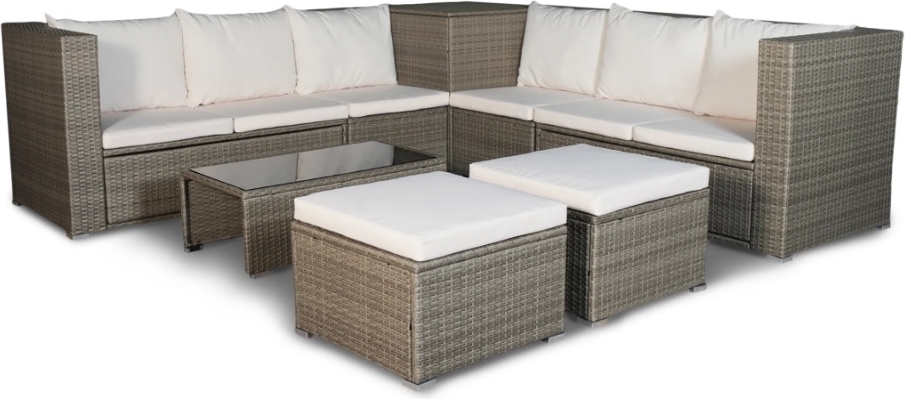 Key West utegrupp; hörnsoffa med bord, fotpallar och förvaring - Brun konstrotting
