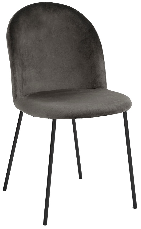 Kloe stol i ett stilrent utförande med god sittkomfort tackvare den rundade ryggen. Klädsel i grått lyxigt sammets tyg med matchande smala svarta stålben.