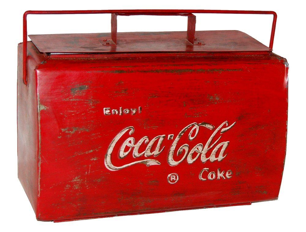 Retro förvaringslåda i metall i Coca Colas färg och tryck. Rolig, praktiskt och ger inredningen en känsla av vintage. Varje kista är unik och kan därför skilja i finish och storlek.