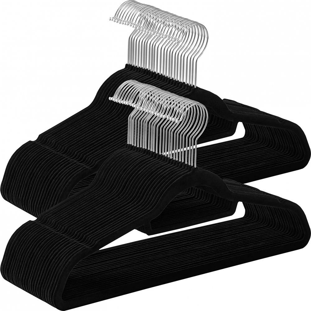 Sammetsklädd klädgalge av plast med krok av metall. 50 st.