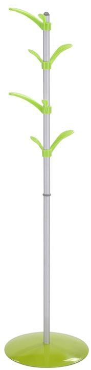 En färgglad klädhängare med en stilren design. Tillverkad i metall med detaljer i plast och utförande i grått & grönt. hela 8 hängare på olika höjder för praktisk förvaring av ytterkläder.