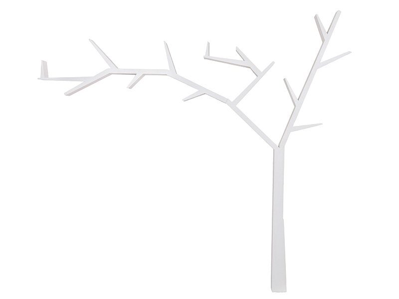 En mysig klädhängare med en konstnärlig design. Klädhängare i form av ett trä, tillverkat i trä med ett vitt utförande med ett flertal hängare.