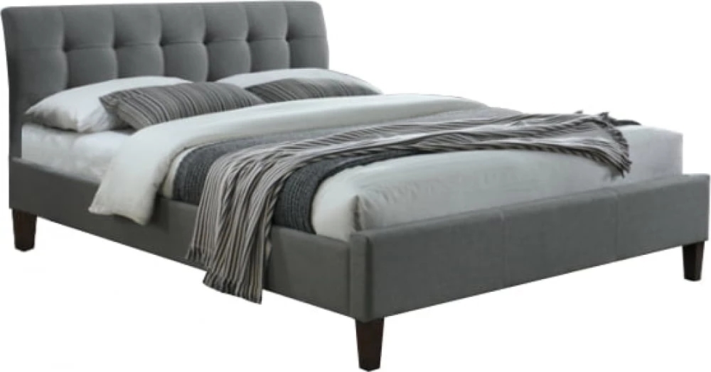 En snygg säng med en modern design. Sängen är tillverkad i solid trä och klädd med ett mycket behagligt tyg för maximal komfort.
