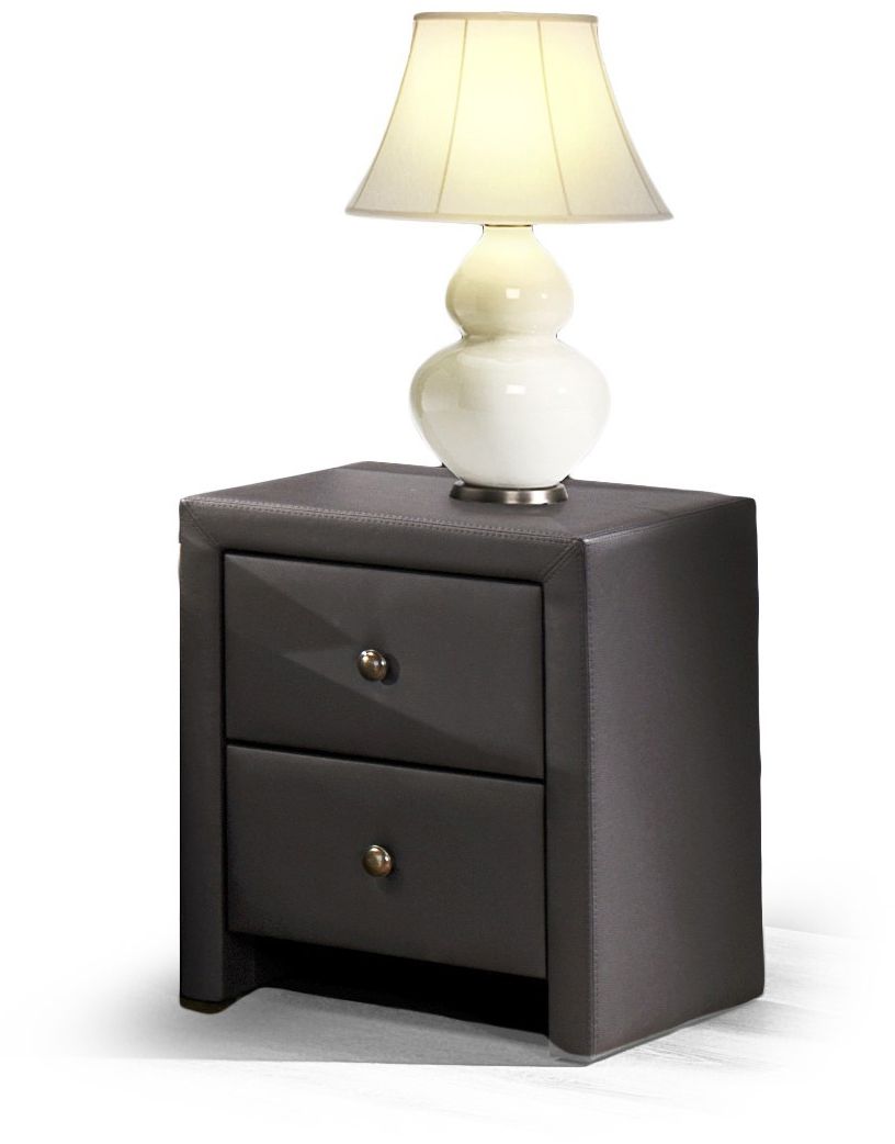 Ett snyggt sängbord med en modern design. Tillverkad i MDF med en mysig klädsel i svart konstläder. Två praktiska lådor för smart förvaring.