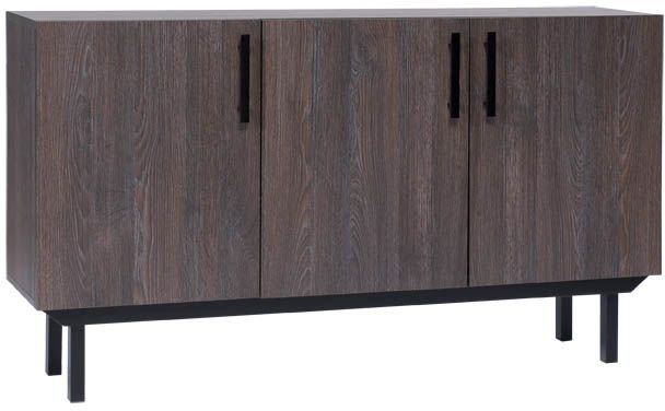 Härlig skänk med en modern design. Färgalternativ mellan mörkbrun med många fina detaljer eller en lite modernare slät vit färg. Stor yta på toppenskivan för utställning av exempelvis prydnadssaker, samt ett stort skåp med hylla och ett lite mindre skåp med hylla för praktisk förvaring.