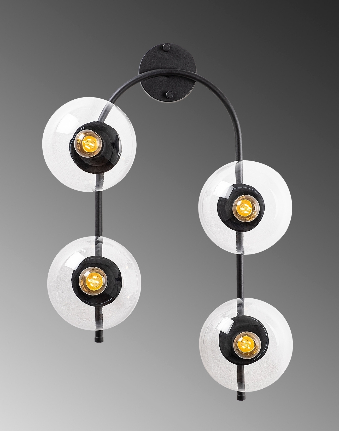 Vägglampa av metall och glas. Ljuskälla ingår ej.