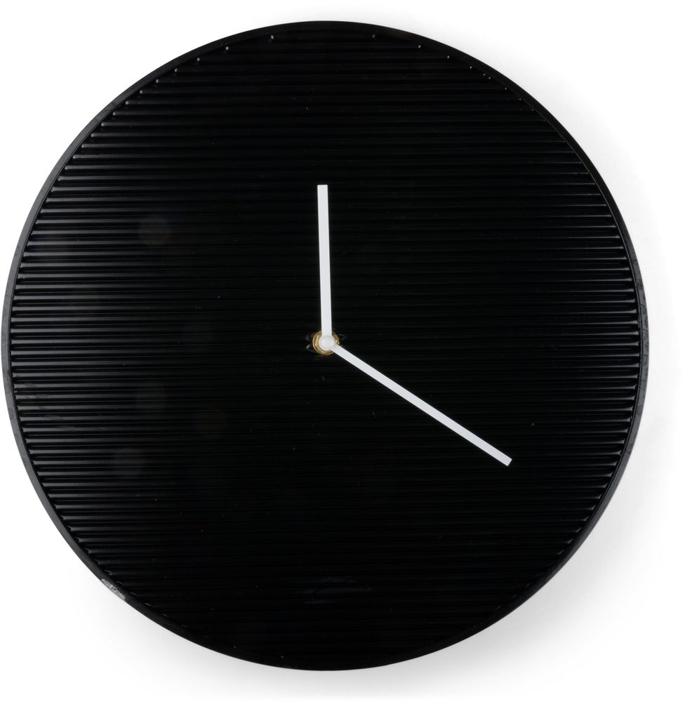 En snygg och modern väggklocka i svart plast.